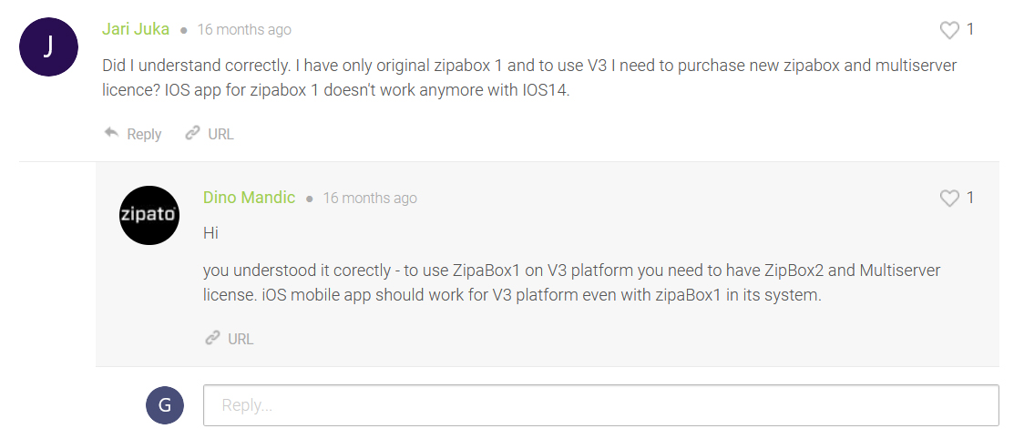 From time to time we need the support on Zipabox v1 because of connectivity issues.