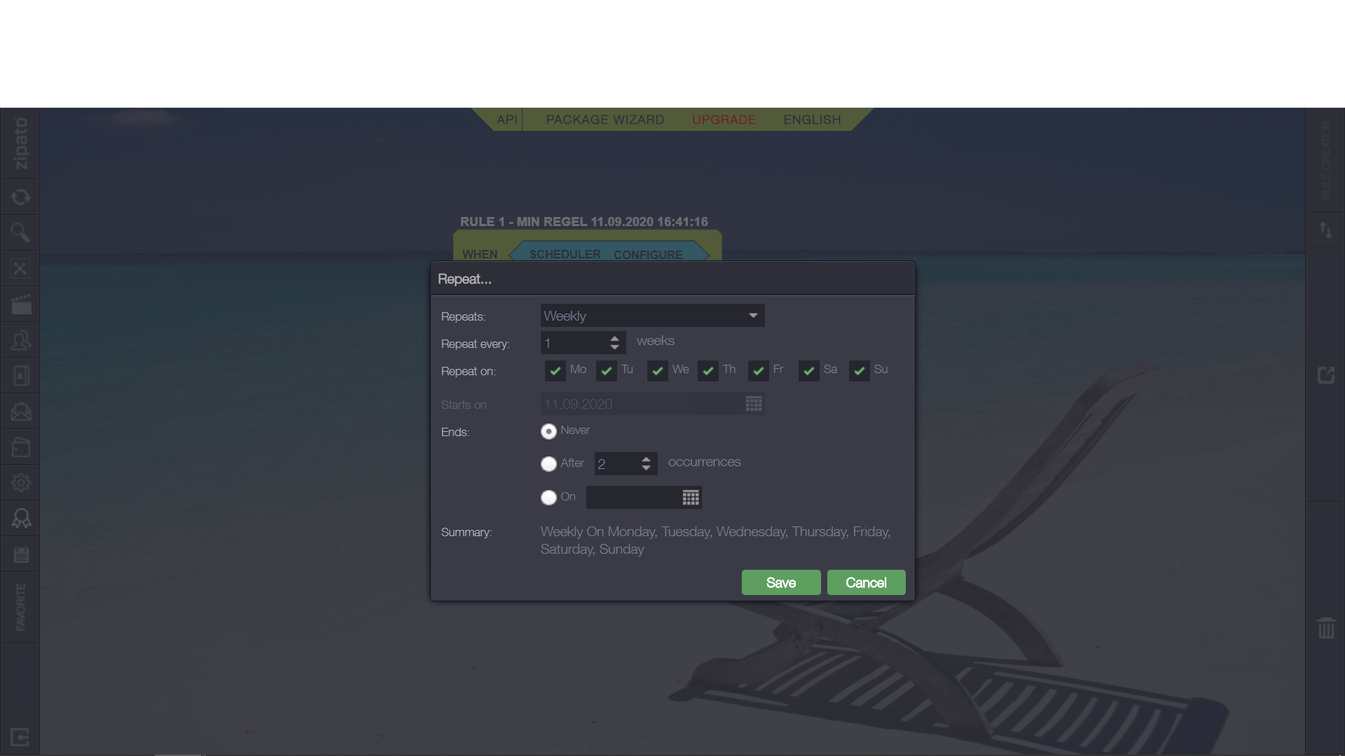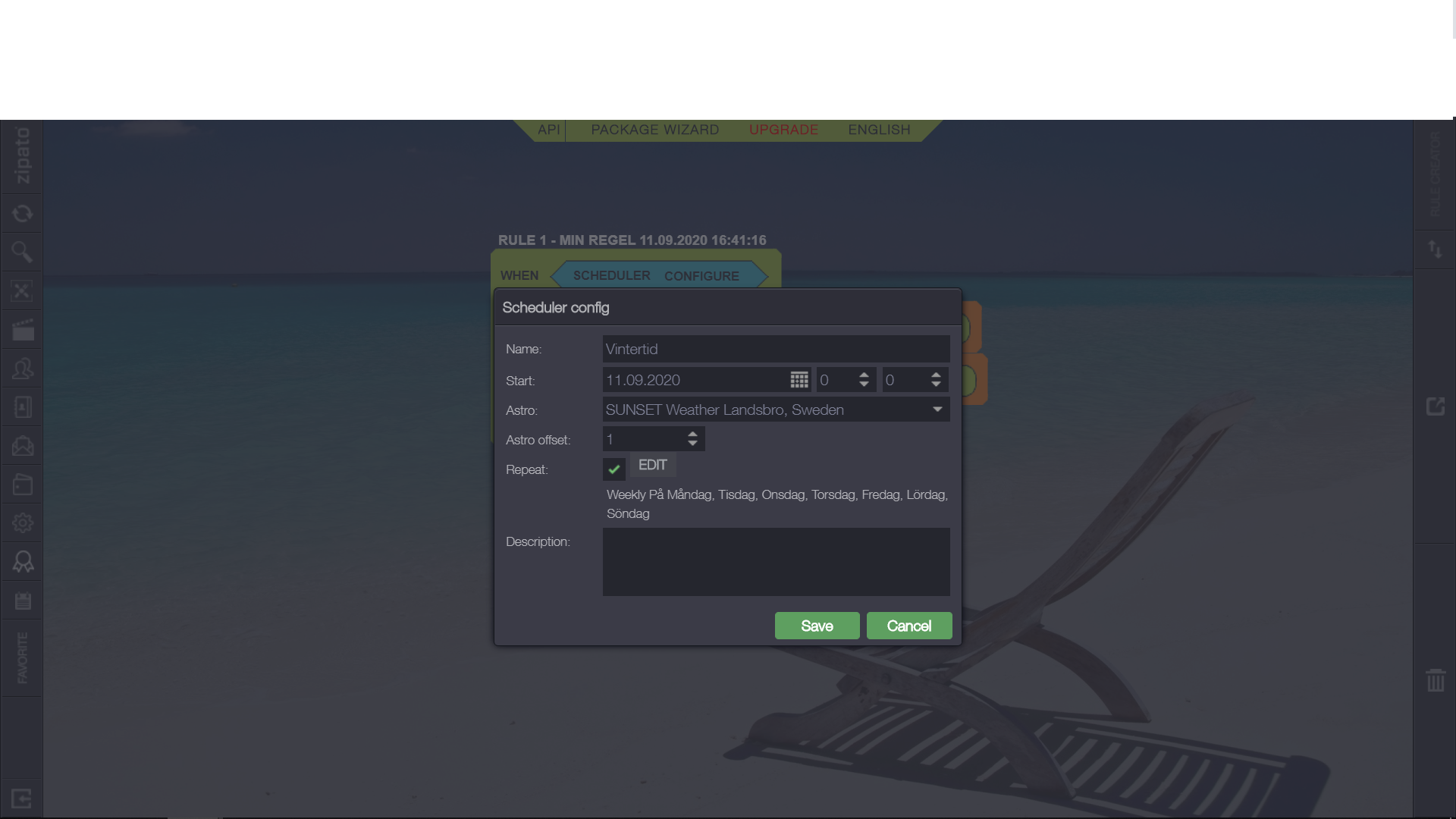 The "When" triggers the rule, i.e. you will only trigger this rule 1 hour after Sunset every day.