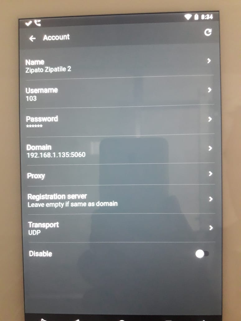 I am trying to connect 3cx sip server to Zipato Zipatile 2 but it is showed disconnected.