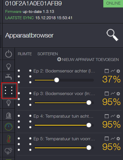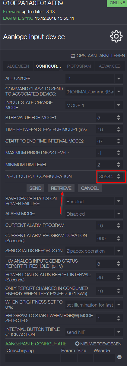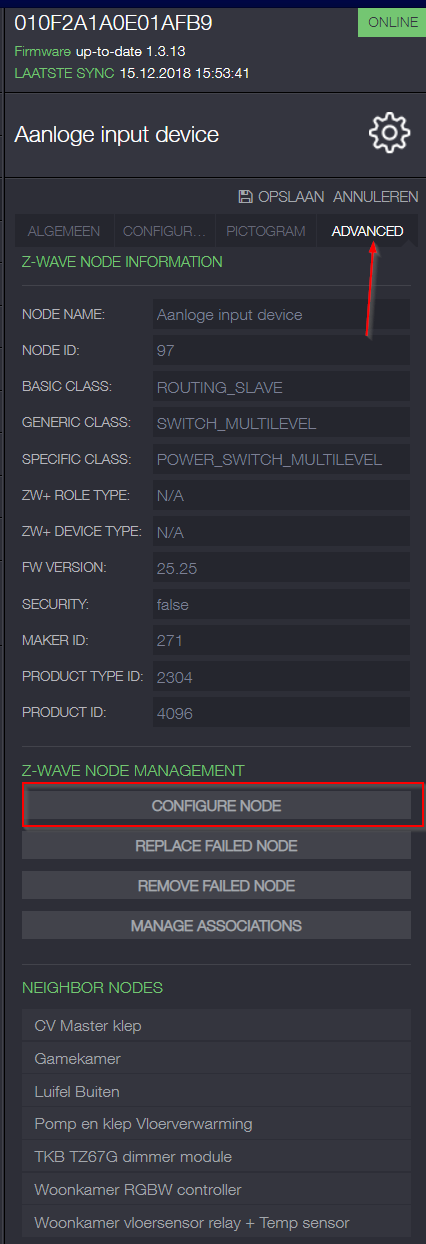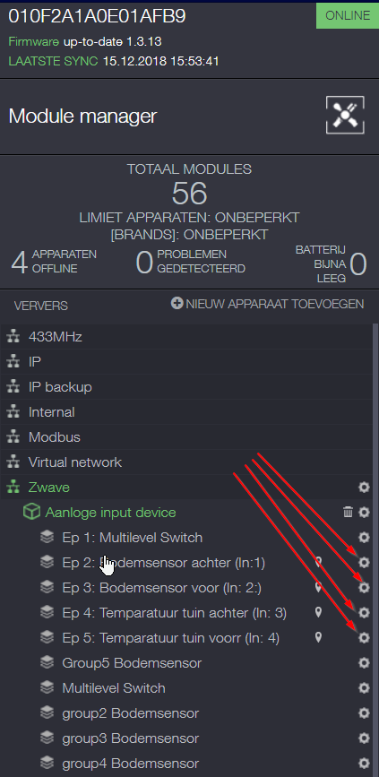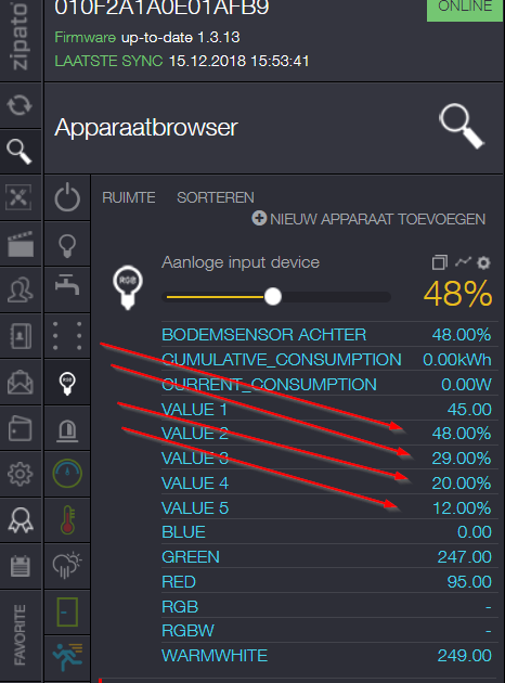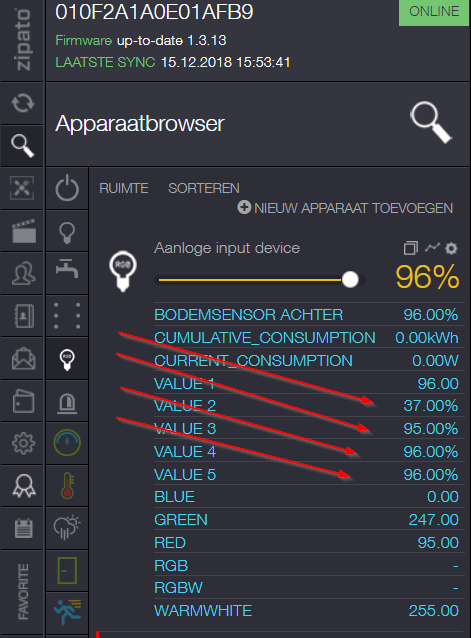 - 4. Go to the Zwave network and select the RGBW controller (I have change the RGWB controller name in to Aanloge input device) repeat the next step 4 times. Click on the edit icon. See attach file (Step 4)