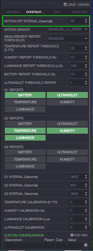 I have a question related to this issue somehow. How can I set up Multisensor 6 settings (basically it's about motion sensor interval)? I have found information in old topic - https://community.zipato.com/topic/problems-with-aeon-multi-sensor#comment-62 but it looks like this was based on old GUI version.