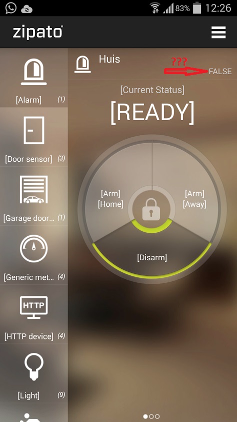 In the android-app, the alarm is always showing 'false'. See the picture.