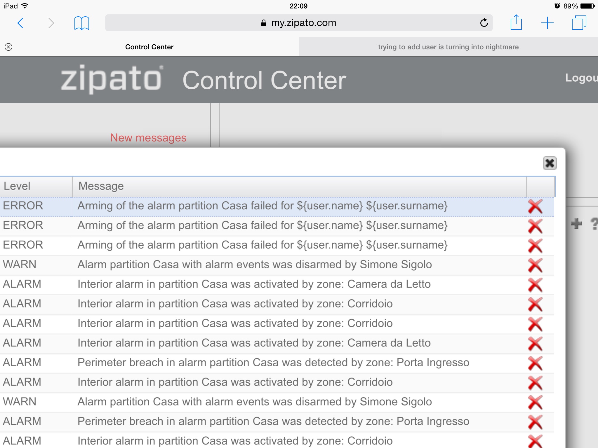 Alarm user problem