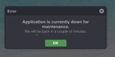 Same problem here. The error page says "will be back in a couple of minutes", but it has been a lot longer than a couple of minutes...