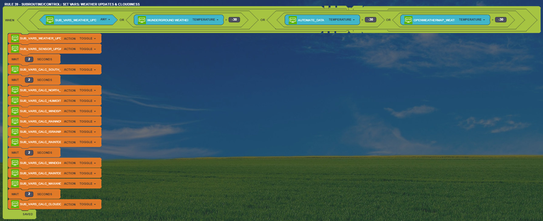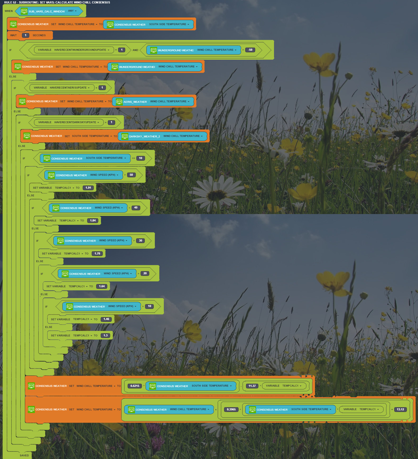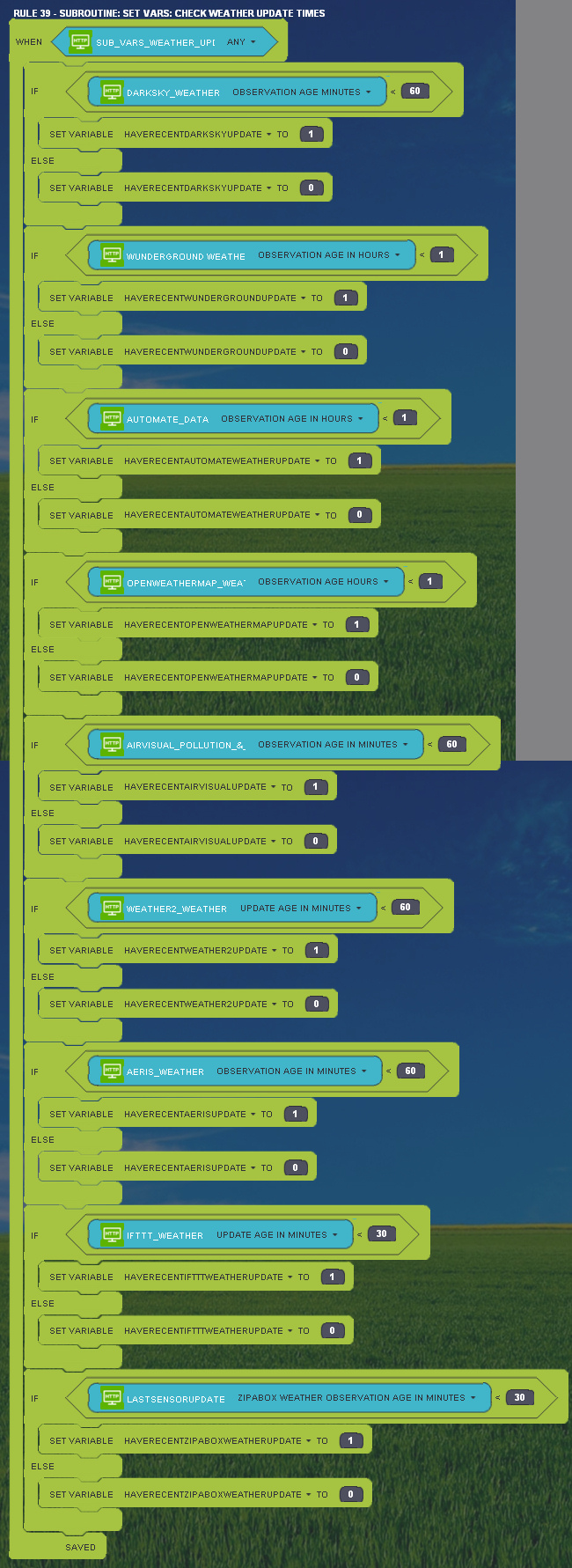 Well, what to say. David, you are a key player...a nearly 1500 lines script just to have a reliable weather information together with god knows how many rules is definitely not a beginner solution :)