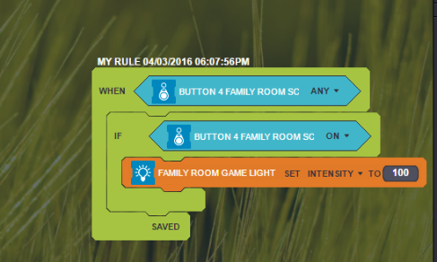 I'm still learning the Zipato and am trying to setup my Cooper 5 button scene controller. I added the scene controller to the network and the only way I see to associate actions to buttons is through the rule creator. I've tried both of the attached rules just to turn on a light and neither rules work. I've also noticed that most of the buttons only turn on temporarily, button 4 is the only one that keeps it's on/off state.