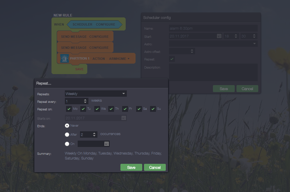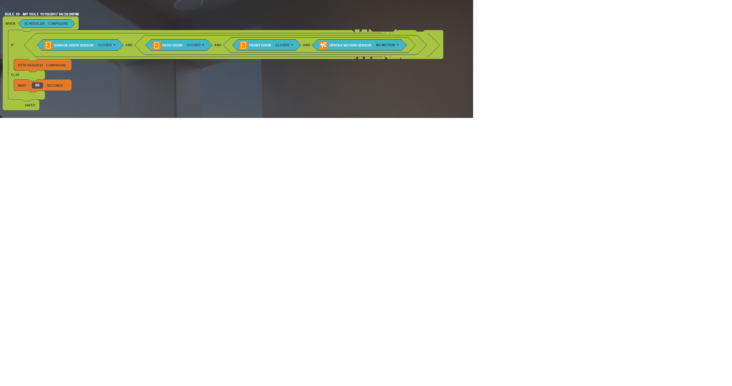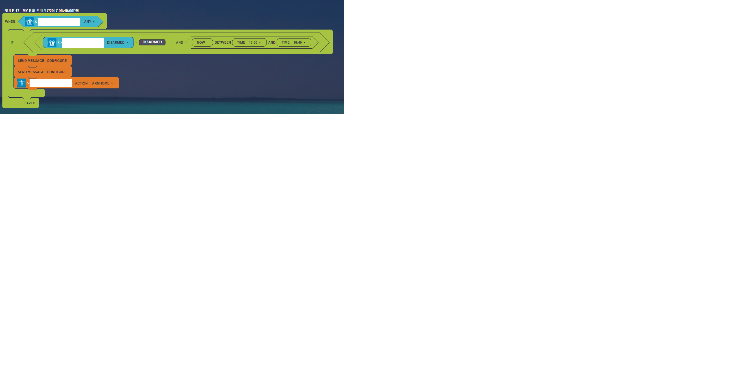 I want to arm my home away at a certain time if there has been no motion for a certain time.