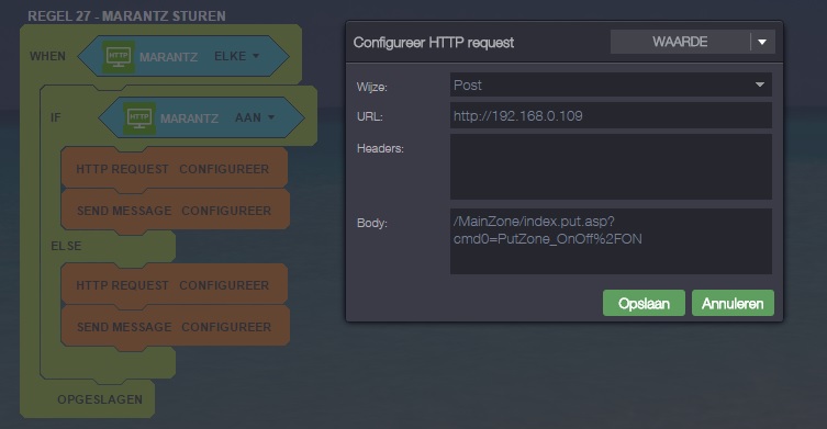 I'm trying to control my Marantz AVR whit a post request.