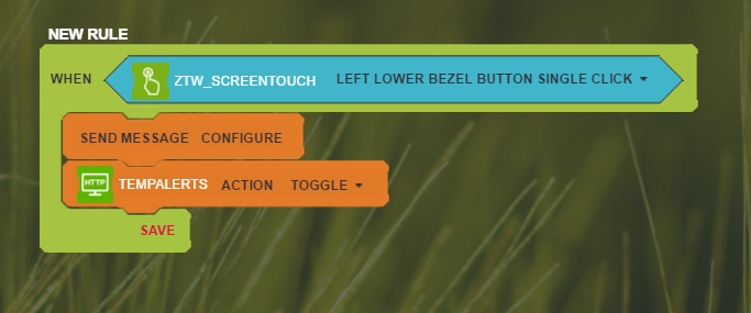 Try something like this. Zipatile buttons are found on Control devices and you can put any action you desire within the When condition.