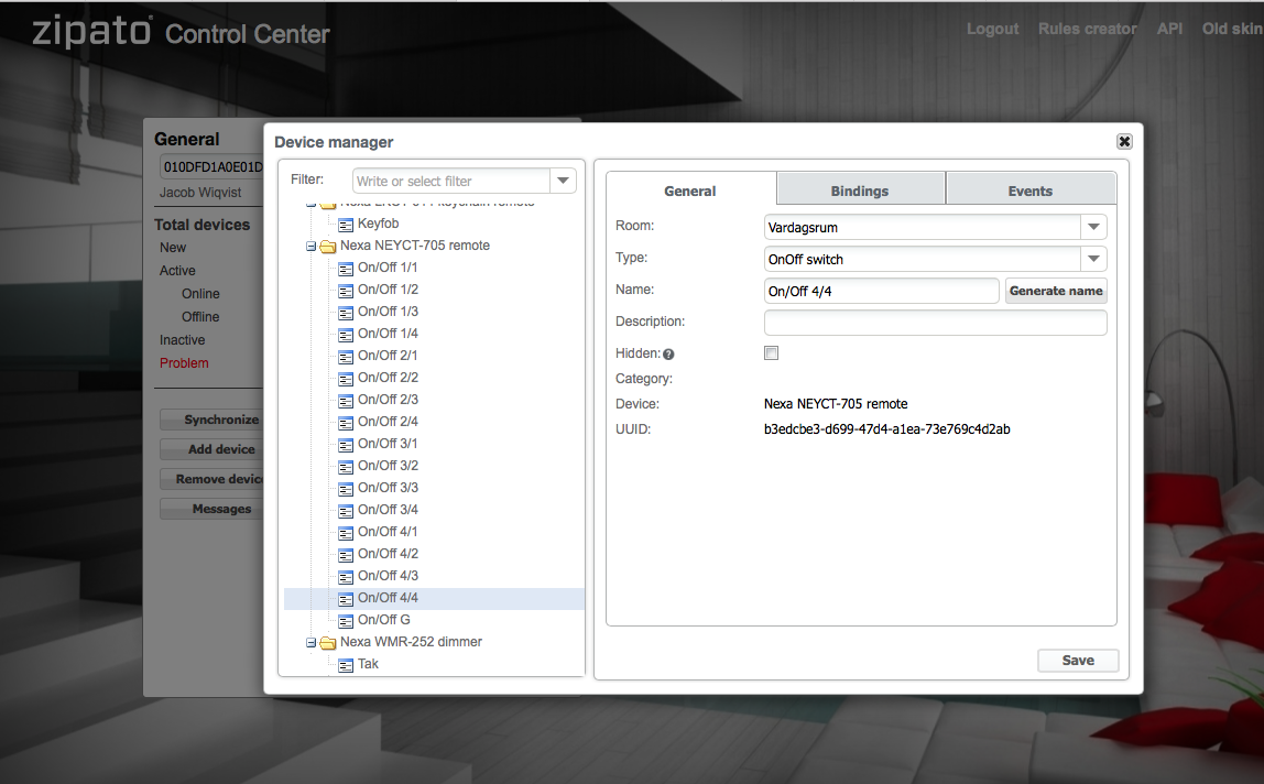 If you want to you can create virtual sensor and manipulate with it through the Rule creator to turn on for a few seconds when you press buttons on your nexa neyct-705.