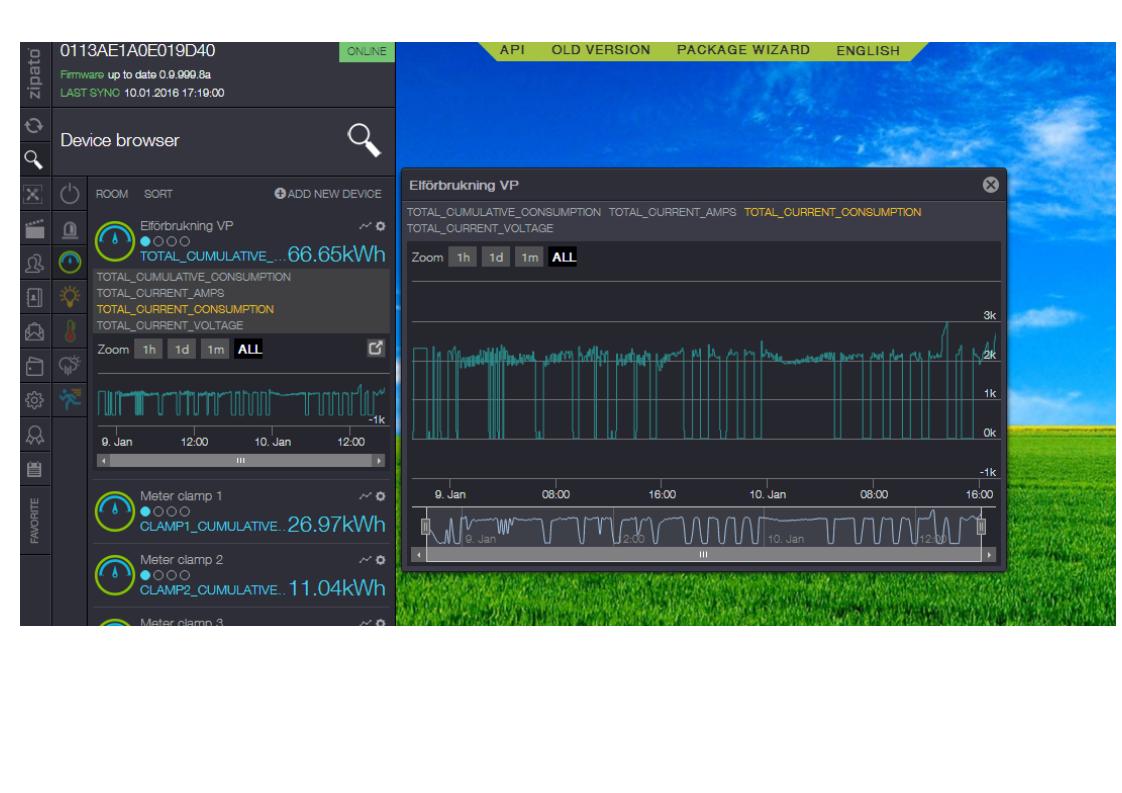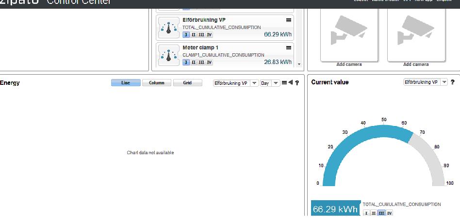 I can se that it is sending data to the zipabox and i can view the data in "the new" webb application(see attached file "z_cc_new.jpg"). But there is no option to se consumption for each day/month/year (column chart) so then i go to the "the old version". But when i chose "Elförbrukning VP" in the "energy window" it says Chart data not available (see attached file "z_cc.jpg")