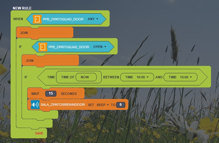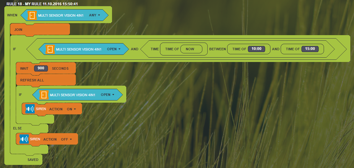 How do I create a rule, if a door is left open (between 10: 00-15: 00) and I want to get the alarm to close it. have a Nexa - magnetic sensor.