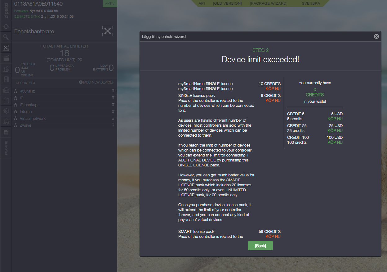 Why cant a install more then 18 devices? The device manager says the limit is 20(???) and I only have 18 installed. And why don't zipato support more then 20 devices?! I have now look everywhere but i cant see where you say that the only support only 20 devices that was a real disappointment.