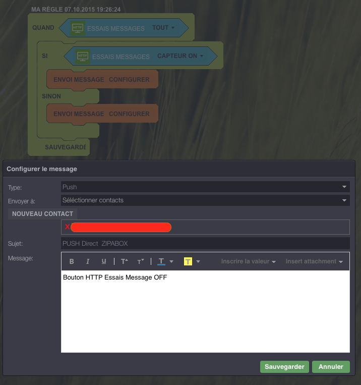I tried using push message by the zipabox. (I did not know before and I used to the req Http pushingbox until now)