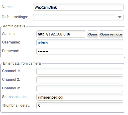 Can you help me for the configuration of my web cam, i don't know the parametters to put to get live stream