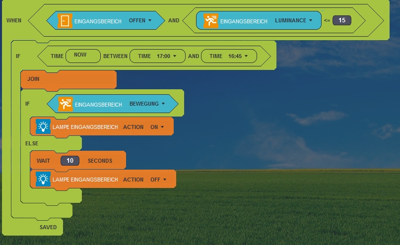 Hi, i will let you know...this may take same time. But the main propose it to use the door opening as trigger for switching the light ON and the motion sensor to keep the light ON until no movement is recognized for x-seconds then switch light to OFF.