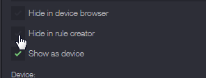 When I open the configuration page (sensor 1.png) , I don't see <Hide in rule creator> (hide.png). So, I did many test with check and uncheck the box option and I never see the Temperature in rule creator. Also, I check/uncheck the <Hide ini rule creator> box for root device and I don't see any change in the device list, Root device is always showed. My firmware is 0.0.999.8 and I don't upgrade tp pro version. Are you sure than this multi-sensor is supported ?