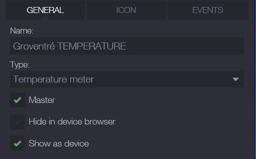I tried (see device manager.jpg) but I never see the temperature device into the list of device (devices list.png). I synchronized many times and I check/uncheck the <Hide in rule creator> and the <Show as device> box, I never see the device ... :-(