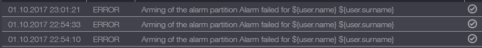 There are no errors with any of the alarm devices, they are all set to "Ready".