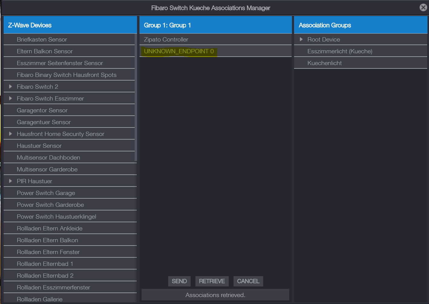 But I think you are right that it has something to do with the associations of the device. There is one association which I can´t remove. When I remove it, click on send and after that on receive, it´s there again.