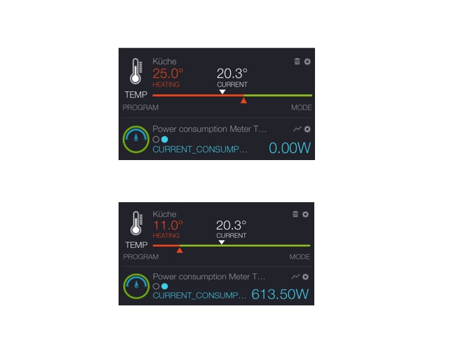-> Heater switched ON (613,5 Watt and 230V outlet measured)