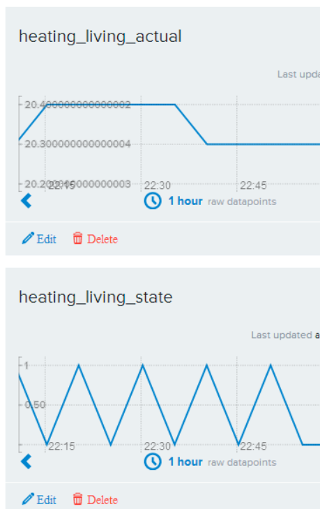 From the documentation and the questions and answers on this form I though there was a hysteresis in the thermostat, but when logging and plotting the actual temperature and state of the boiler actuator it switches off and on constantly. (see screenshot).