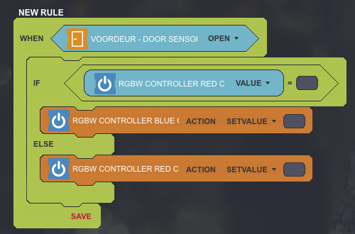 for example when i open the door , if rgbw bulb is blue it becomes red.