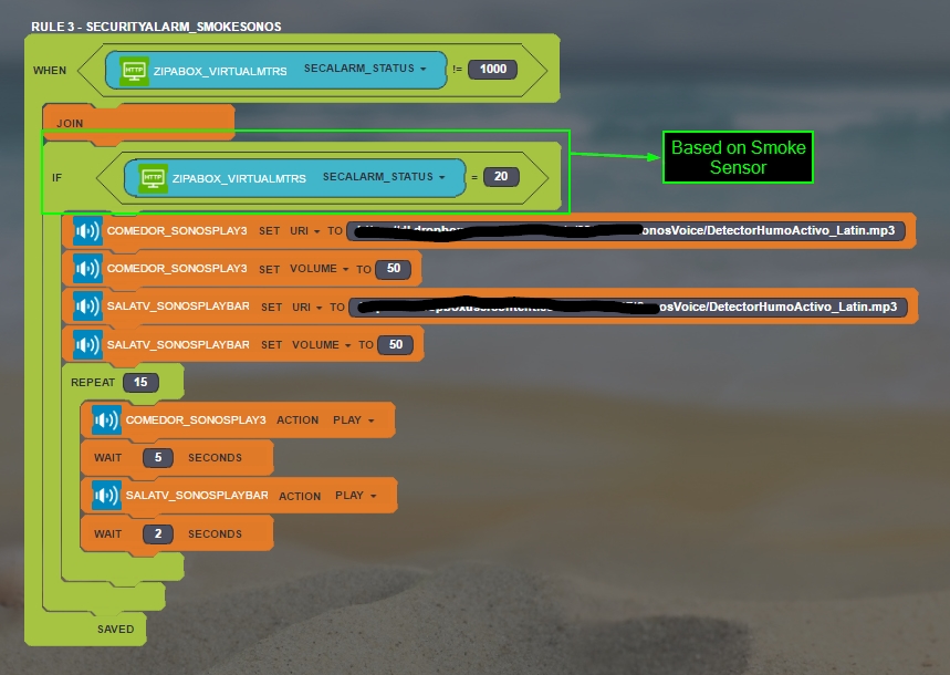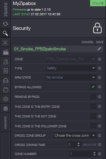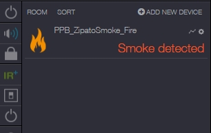 Last I have added the smoke sensor. It is added as a safety zone so it will warn 24hrs.