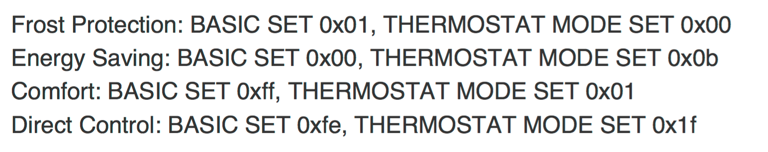 Direct Control: BASIC SET 0xfe THERMOSTAT MODE SET 0x1f