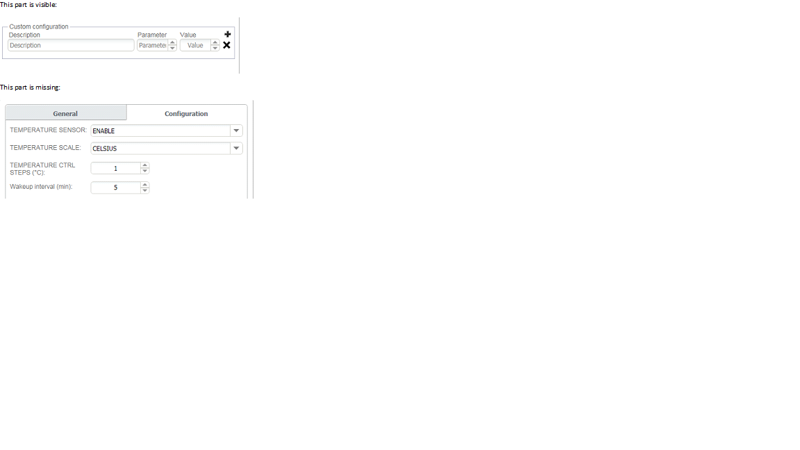 In Device manager\Horstmann HRT4-ZW \wall Thermostat\ Configuration tab I am missing the options to setup Temperature sensor and Temperature Scale. Only custom configuration is visible. Tried several times to associate and remove this unit. Have anothher unit that works ok. What am I doing wrong ? The result is that I can not use the unit with my Zipabox.