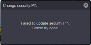 When I try to change from 0000 to a new 4-digit code did I receave the message: "Failed to update security PIN. Please try again."