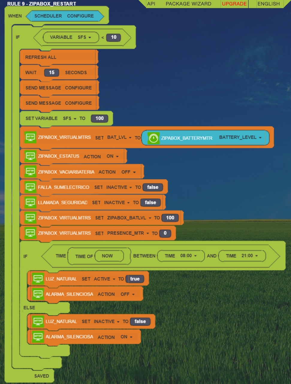 That seems like a good scheme. My only comment is that, because the Zipabox is prone to restarting or losing the connection to the server from time to time, and because (even now) I'm not convinced that the switches and variables retain their state after such events (although it's true that I haven't tested it thoroughly for a while), it might be useful to have a rule that runs at intervals and tries to reestablish the "LuzNatural" sensor state in case it gets lost.