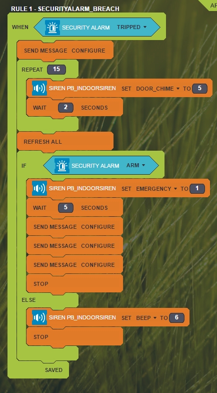 Yes, the first two rules would be your squawk (you can put whatever number of beeps or lights) they will only activate when you change Alarm Status.