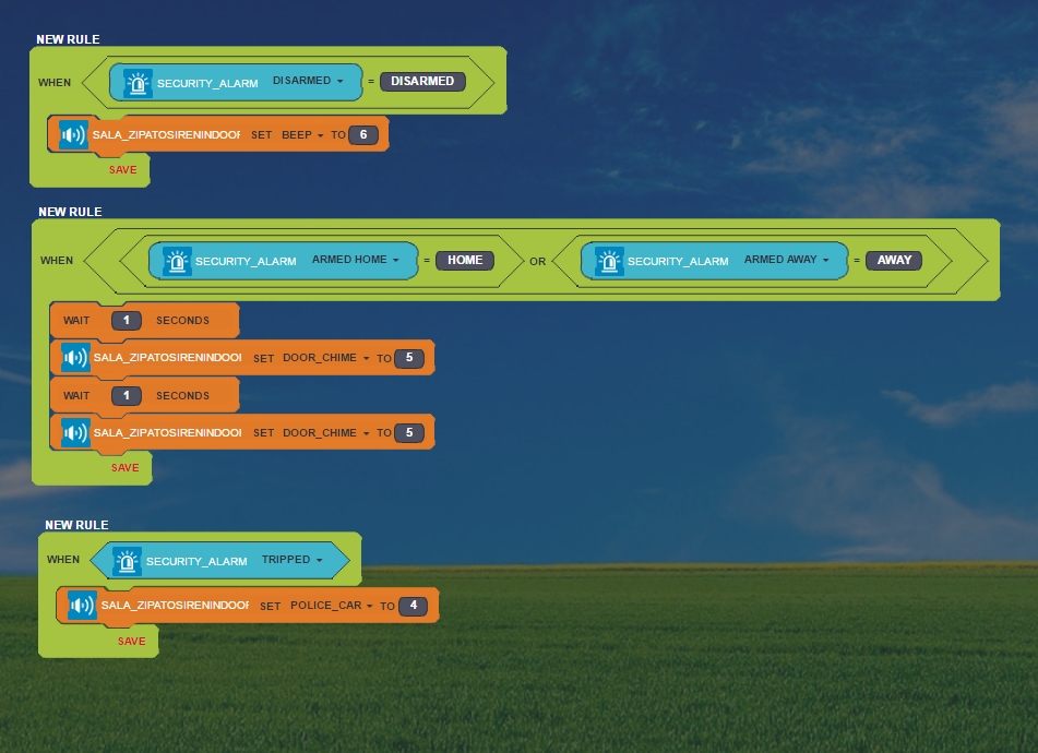 I would like to use the "beep-beep" style sound when I enter the house and my alarm is on.