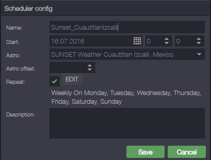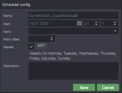 What is the scheduler set for (time or astro)?