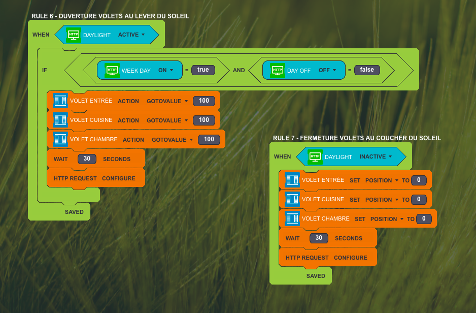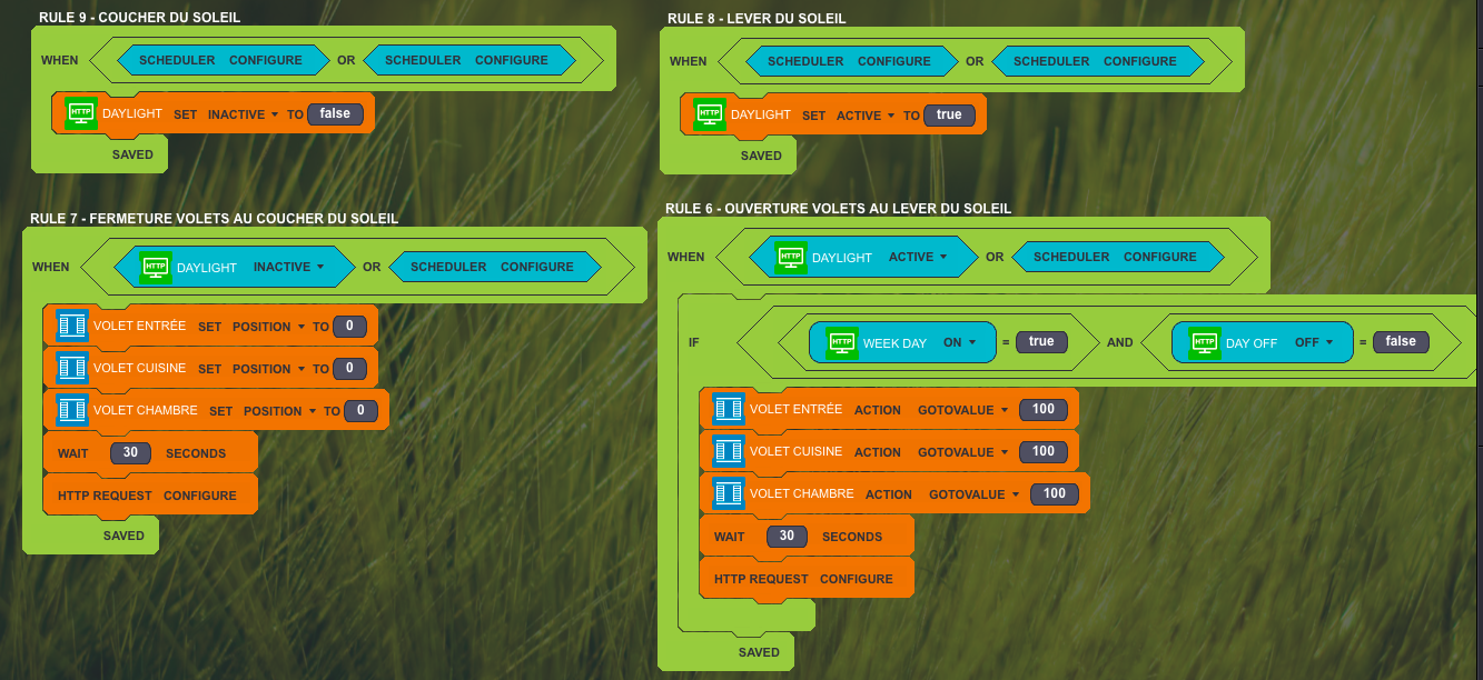 I'm trying to launch the closure of my roller shutter, if not already closed, if sunset is passed, and during a period of the day.