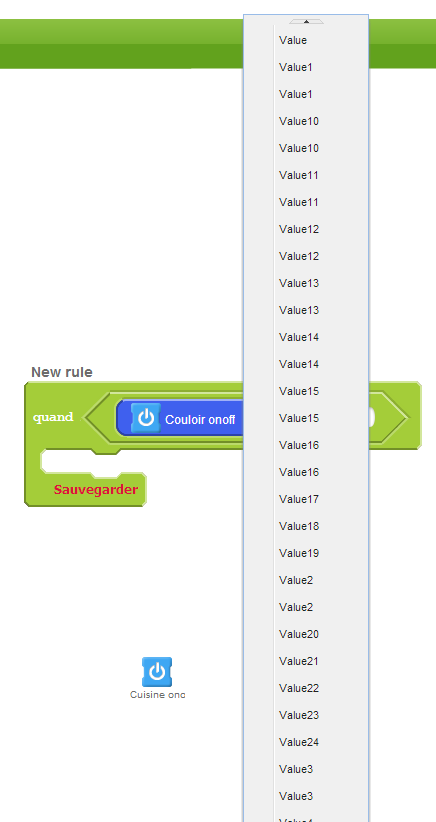 If you want to control your switch/dimmer, there is only one action puzzle. You put your device in it and choose action (dimmer doesn't have on/off actions, so if you want to turn it off you should choose action 'Gotovalue' and set value to 0).