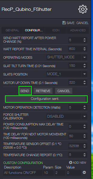 (optional) Config parma 90: set to 5s. Just to make sure that your Qubino waits 5s if receiving successive commands (open, close, open).