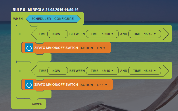 attached photos of the rule and scheduler settings