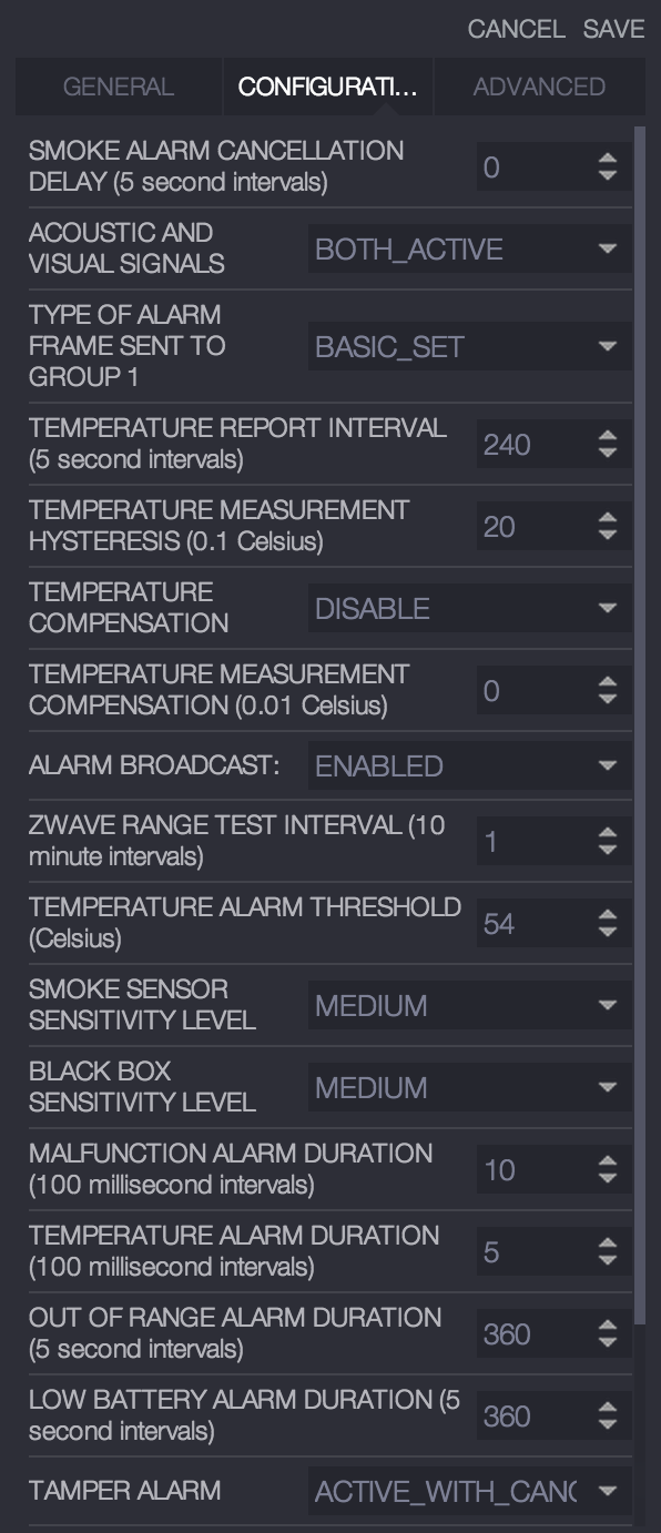 In short, I do not trust the state declared in the zipato gui (it sometimes says SMOKE DETECTED while the smoke detector it self is quiet and does not flash or similar). I THINK that this also renders in an accelerated polling of the device that keeps it online more or less all the time (not only wakeup every 7th minute). I bought my smoke detector a few month back and I am already on my third battery...