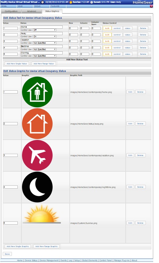 However, what we need is a ground choice to set modes. This is implemented inother hubs I have tried like: Homeseer, Vera, Homesenter, Smartthings and soon. (see picture)