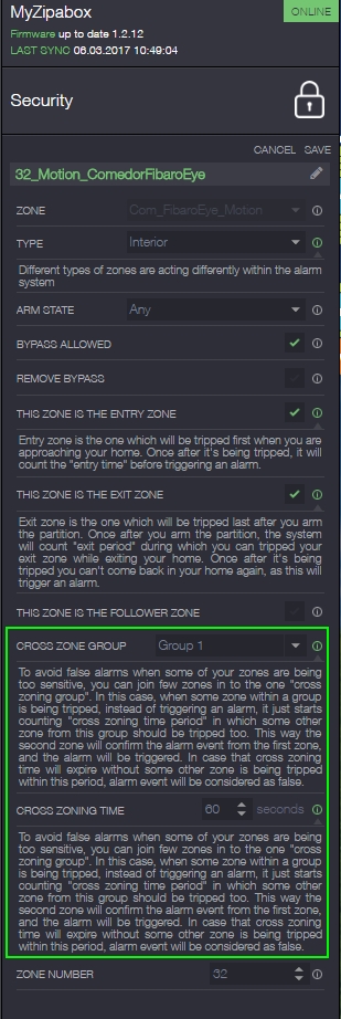If you have aeotec sensors only sensibilty and blind time can be adjusted, if you have fibaro motion sensors you have more settings to play with. Last step but most important, is to configure your motion sensors as "Group" in your alarm zone configuration, I was having false alarms before using this setting due "masses of air moving" being detected as a person, read the description in the alarm configuration.