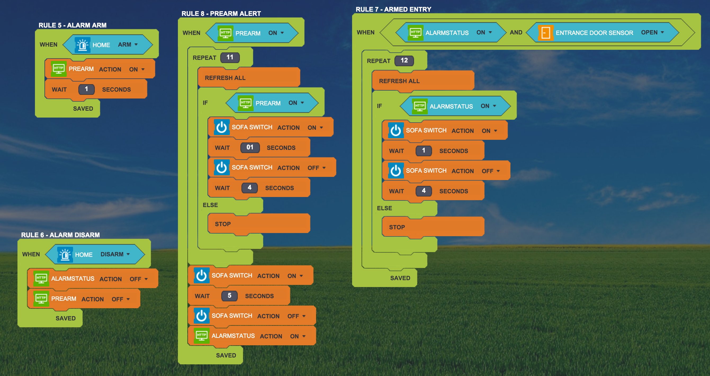 My complex rule for Alarm Arm/Disarm and Entry