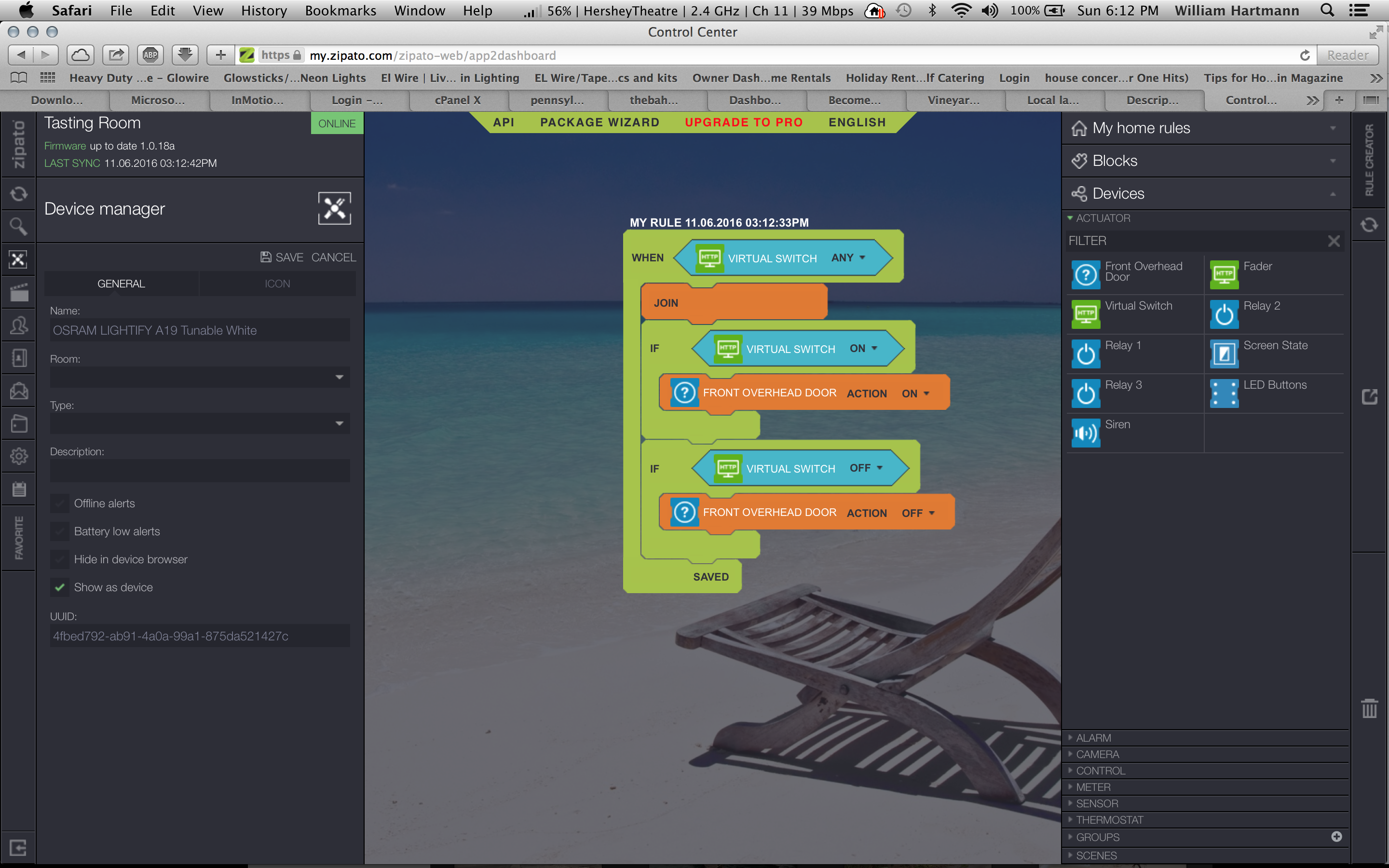 Thank you for your reply and help. The lamp did not show up as in your picture. Maybe that is my issue. Here is a screen shot showing my simple rule and how the device came up. I am not using the Osram hub since the Zipatile find the lamp on its own. I could not find any documentation to tell me if it is need or not but I do have one if that might be the issue. Any advice is greatly appreciated.
