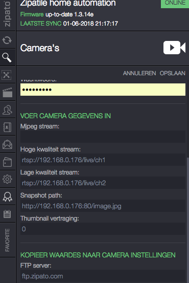 I insert some screenshots with it (cam 192.168.0.176), the problem is the snapshot URL (I think)