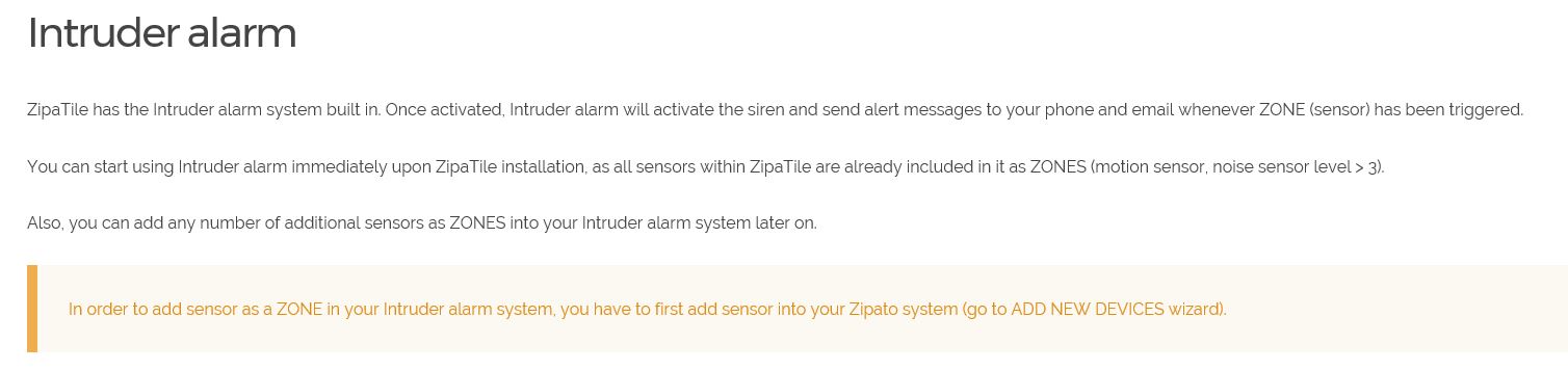 I am an newbie, just purchased a Zipatile, and I am trying to add a couple door/windows sensors to the built in "Intruder" alarm, so it can be triggered if someone opens a door or window while the intruder alarm is armed.
