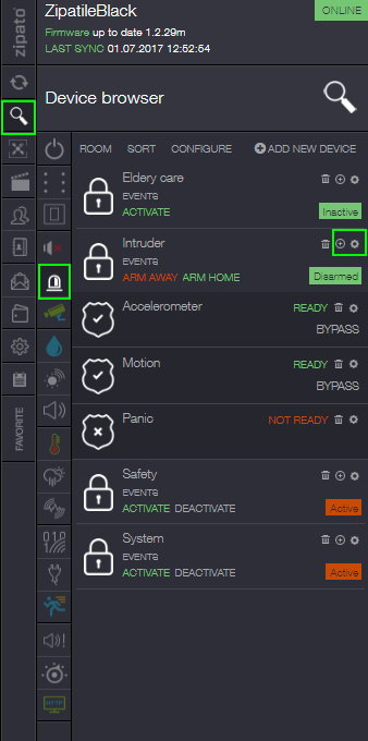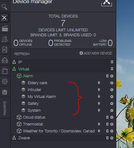 One of Zipato's YouTube videos states that there should be an icon to do this, right beside the alarm (or virtual alarm)...but the icon doesn't show in my web interface... (screenshot also attached)...