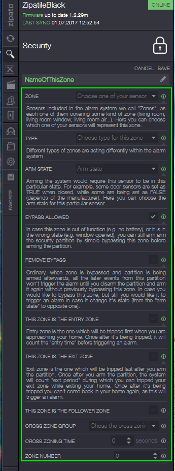 Newbie - How to create a new Zone for the intruder alarm