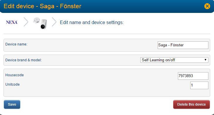 Possibillity to manually edit Housecode and Unitcode for Nexa Devices