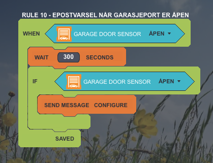 I am trying to create a rule that sends me an email-notification if I (or probably my wife) forgets to close the garage door. I have a garage door sensor. The rule attached does send me an email 5 minutes after the door is opened, even if I close the door immediately.